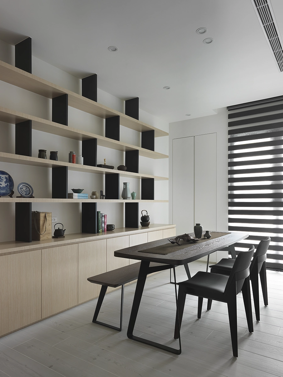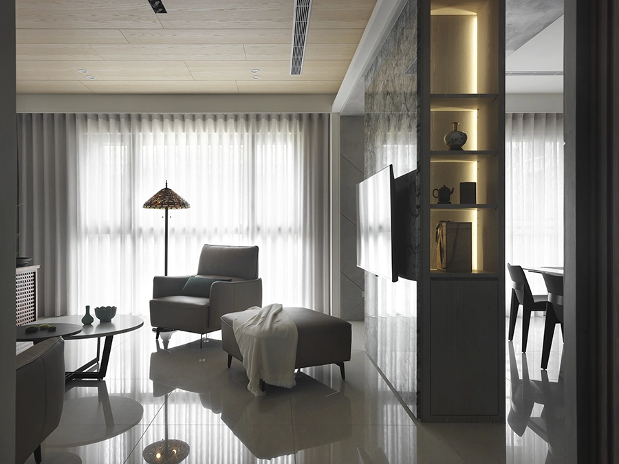 從現代風的俐落線條出發,加入日系禪風的留白與侘寂美學的溫潤質地,讓理性結構不顯冰冷,情緒也能在空間中慢慢沉澱。